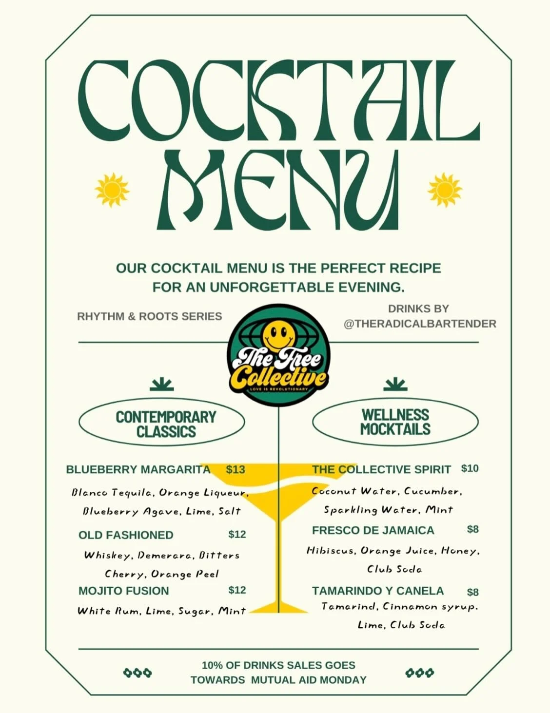 The Free Collective, LLC is creating Rhythm & Rootsβa space where music, mindfulness, and mutual aid come together. With your support, weβre bringing this vision to life: a vibrant third space in Denver where fresh-pressed juices flow by day, craft cocktails by night, and soulful gatherings spark connection.